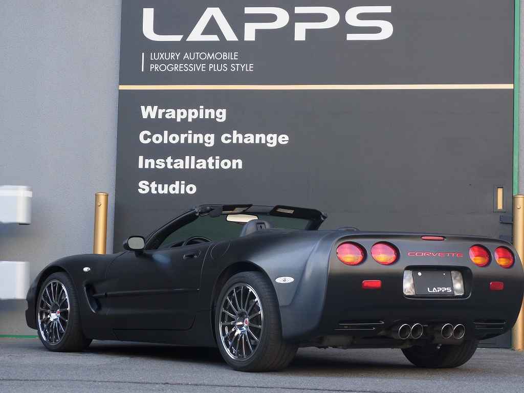 コルベットのコンバーチブルをブラッシュドブラックにてフルラッピングしました。アメ車といえばどこか派手なイメージをお持ちの方も多いかと思いますが、ブラッシュドブラックによる落ち着いた、重厚感のある「アメ車」も悪くはないと思わせてくれるモデルです。「大人の楽しみ」という言葉が良く似合う、やんちゃ感と重厚感の両立が実現しました。
